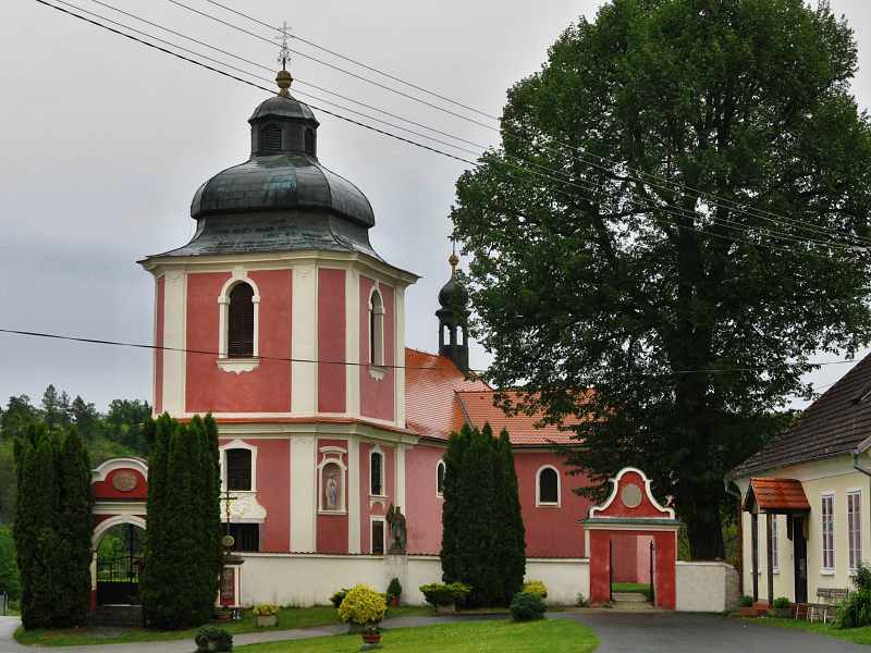 GPS: N 49°44.32175', E 14°55.02803'Původní kostel byl na tomto místě postaven pravděpodobně v 1. polovině 13. století. Písemně je poprvé zmíněn v roce 1350 jako farní. Současný kostel je jednolodní barokní stavba z konce 17. století, před chórem je loď uzavřena do obdélných rozlehlých kaplí. Protilehlé kaple byly přistavěny po roce 1681, čímž získal půdorys kostela podobu kříže. Roku 1765 bylo dostavěno horní patro věže s barokní bání.