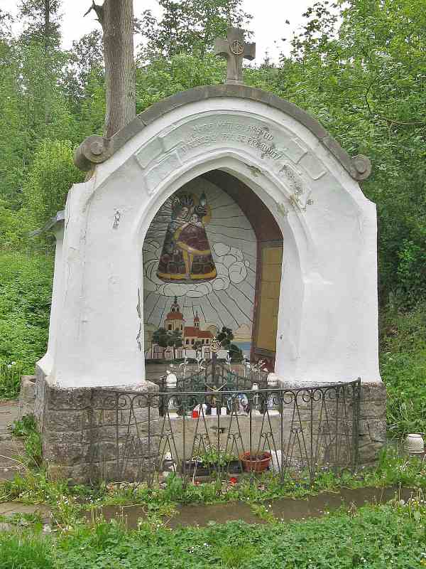 Současná výklenková kaplička byla nad studánkou nedaleko Hrádku postavena v roce 1904. Kapličku navrhl a postavil vlašimský rodák, stavitel Jindřich Neubauer, a stojí na místě původní dřevěné kapličky, která zde byla již v roce 1826. Ve výklenkové kapličce se nachází keramická mozaika znázorňující Pannu Marii Hrádeckou nad kostelem sv. Matouše.
