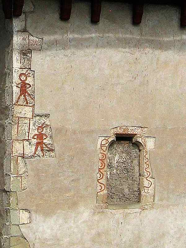 Při opravě, která proběhla v létech 1955 až 1961, byly odhaleny na zdi zvláštní malby znázorňující dvě stylizované postavy provedené červenou barvou, snad mnichy nebo rytíře, či dokonce čerty. V té době vznikly na jižní straně kostela sluneční hodiny s latinskými nápisy "Omnis hora numeratur" – každá hodina je nám počítána a "Non quam diu, sed quam bene" – ne jak dlouho, nýbrž jak dobře žijeme.