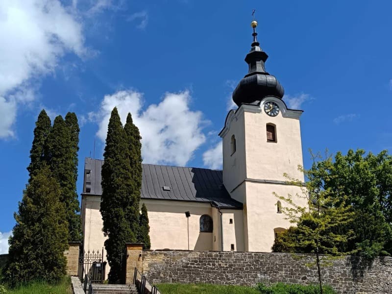 GPS: N 49°41.36578', E 15°51.14593'Kostel je jednolodní s polygonálním kněžištěm a čtyřbokou věží přiléhající ke kostelu na jižní straně. Postaven byl snad již ve 13. století, přesné datum není známé, první písemný doklad pochází až z roku 1359, zmiňuje nejstaršího duchovního správce kostela. Původními zachovanými částmi kostela jsou sakristie a spodní část věže s gotickou klenbou. Loď kostela a kněžiště pocházejí z 15. století, loď má plochý strop, kněžiště žebrovou křížovou klenbu. Do sakristie vede dva metry vysoký pískovcový portálek. Loď byla barokně přestavěna na konci 17. století, stavebníkem byl kníže Ferdinand z Dietrichsteina.