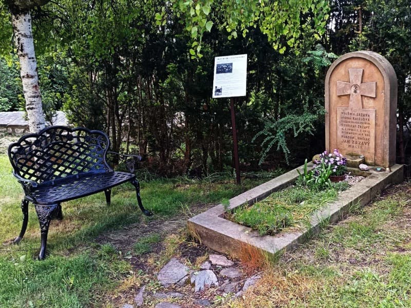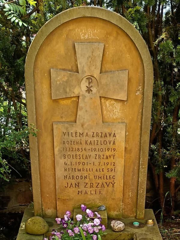 Kolem kostela se rozkládá hřbitov s řadou zajímavých náhrobků a litinových křížů. U jižní zdi je hrob Jana Zrzavého. Výtvarná podoba náhrobního kamene s reliéfem kříže je dílem umělce samotného.