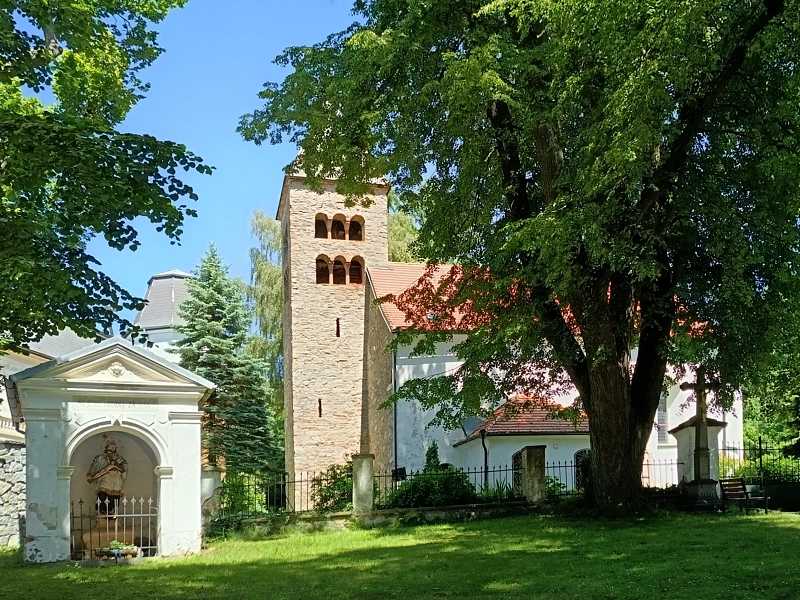 GPS: N 49°36.96098', E 14°41.83123'Stavba má románské jádro, první písemná zmínka o kostele však pochází až z osmdesátých let třináctého století, tj. z doby gotických přestaveb, a nachází se ve formulářové sbírce biskupa Tobiáše z Bechyně. Dochovaná podoba je výsledkem následující renesanční přestavby a puristických úprav z dvacátých let dvacátého století.